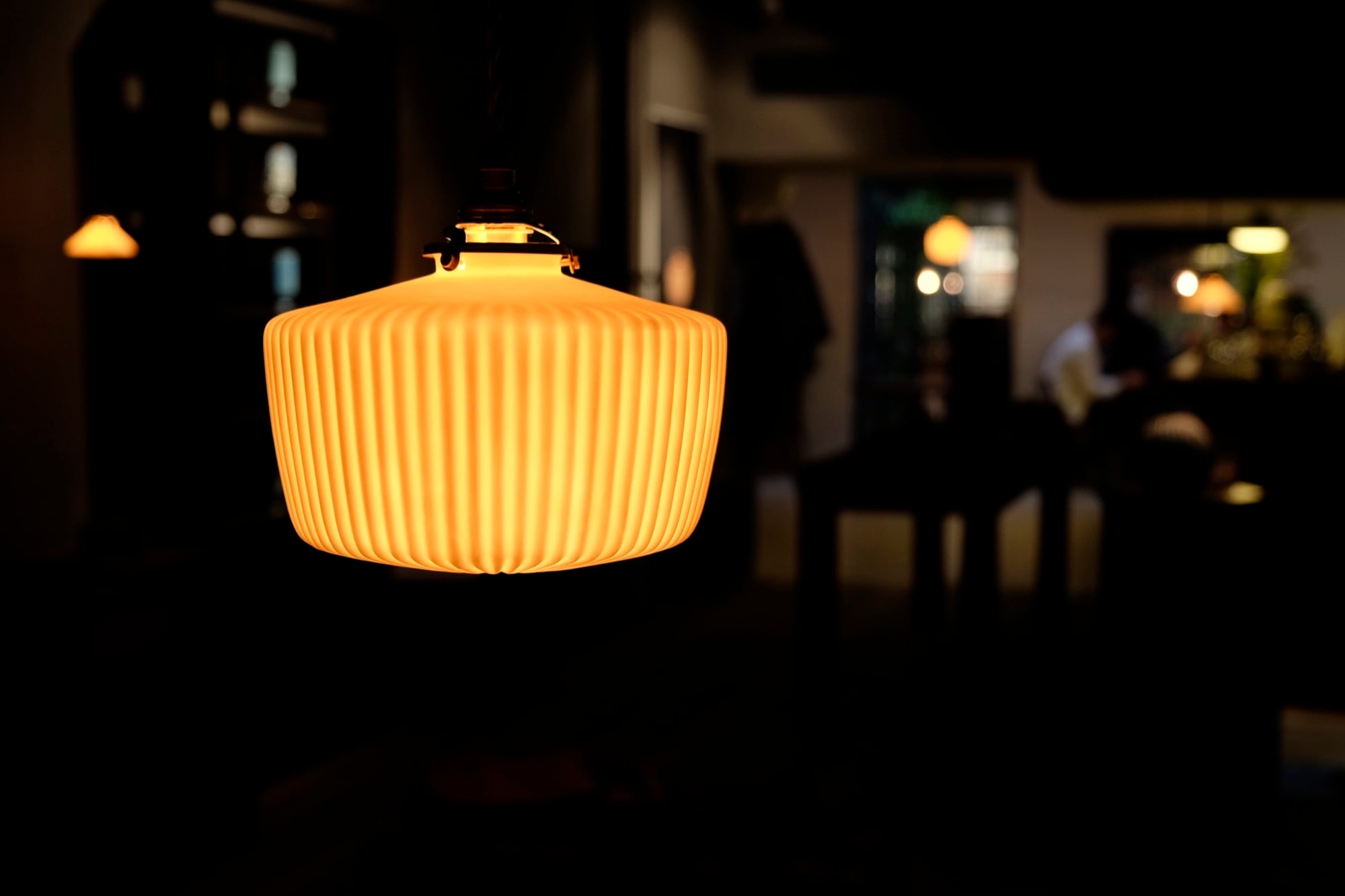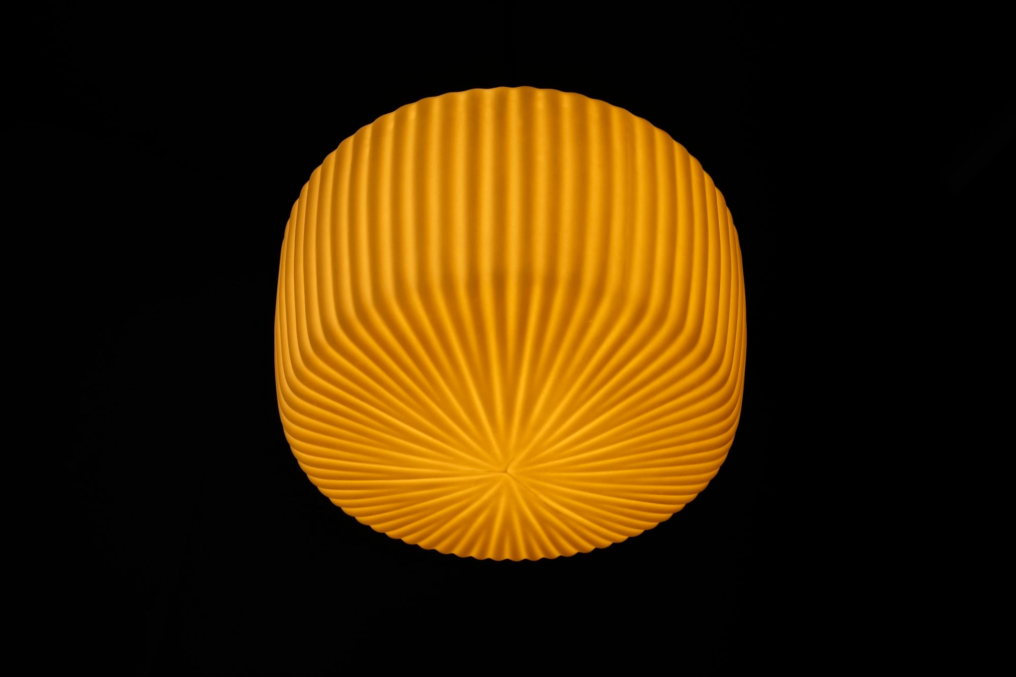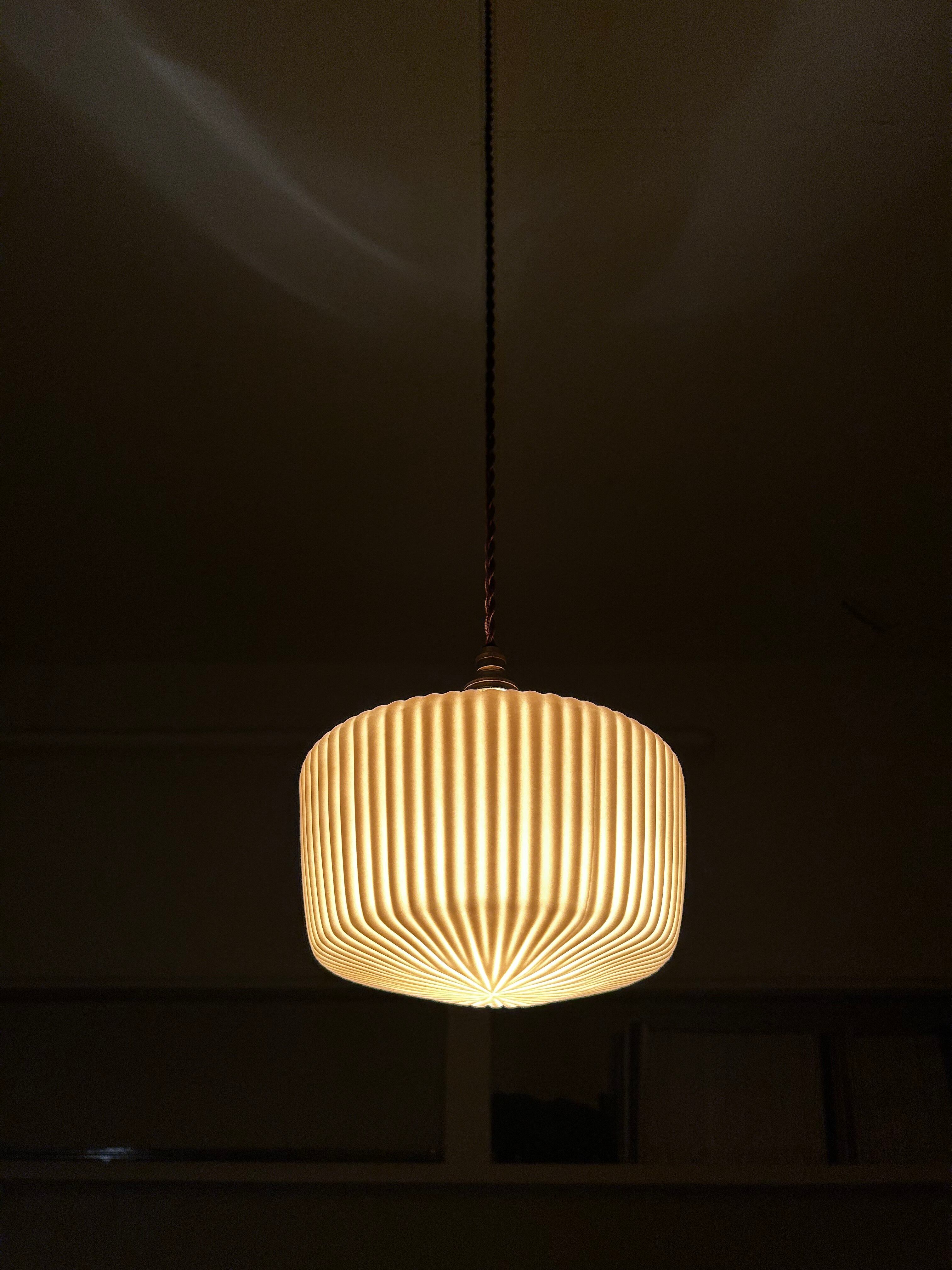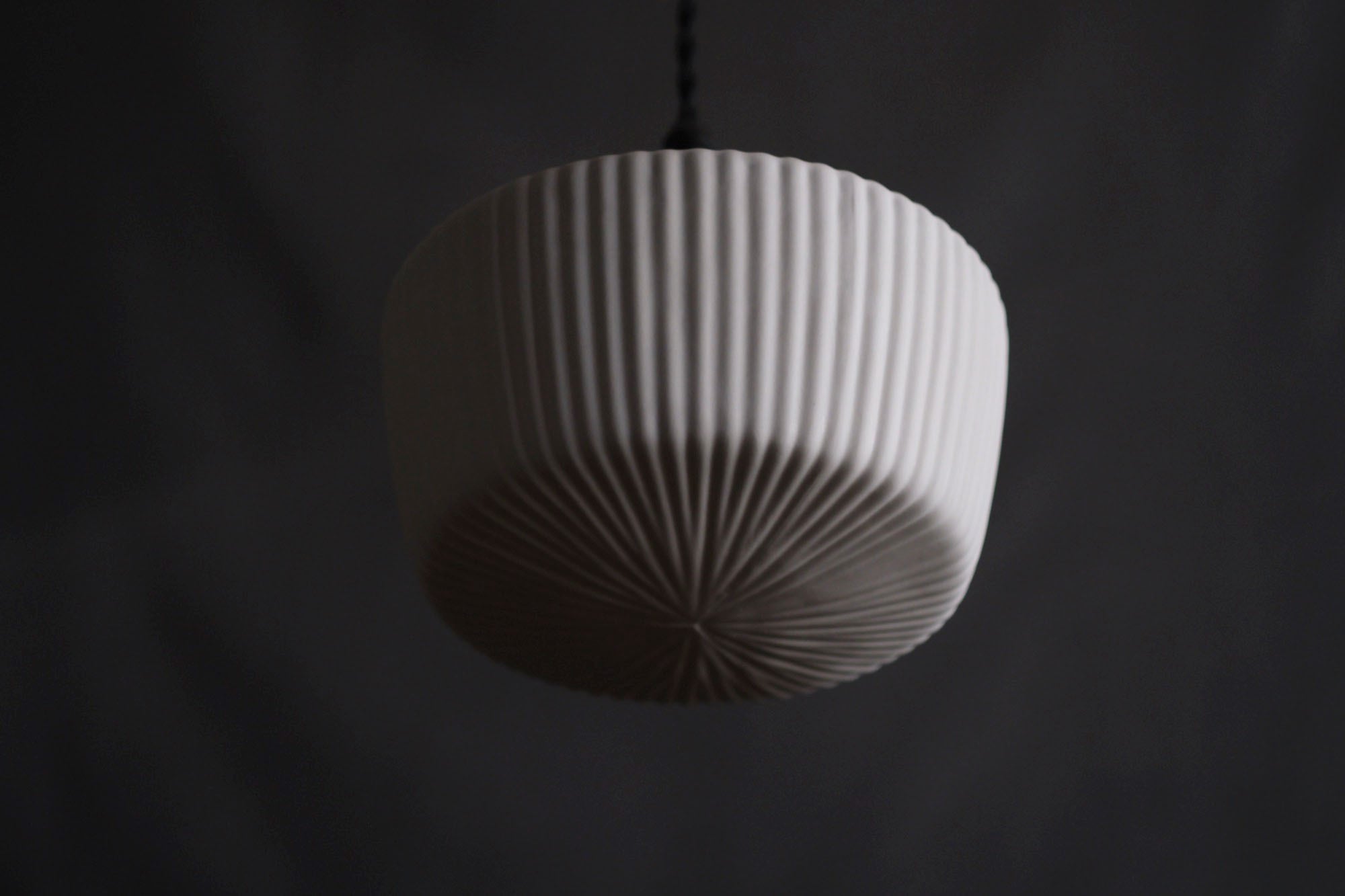 ほのかに広がる温かい灯りと、規則的で深みのあるひだが美しい影を作り出します。