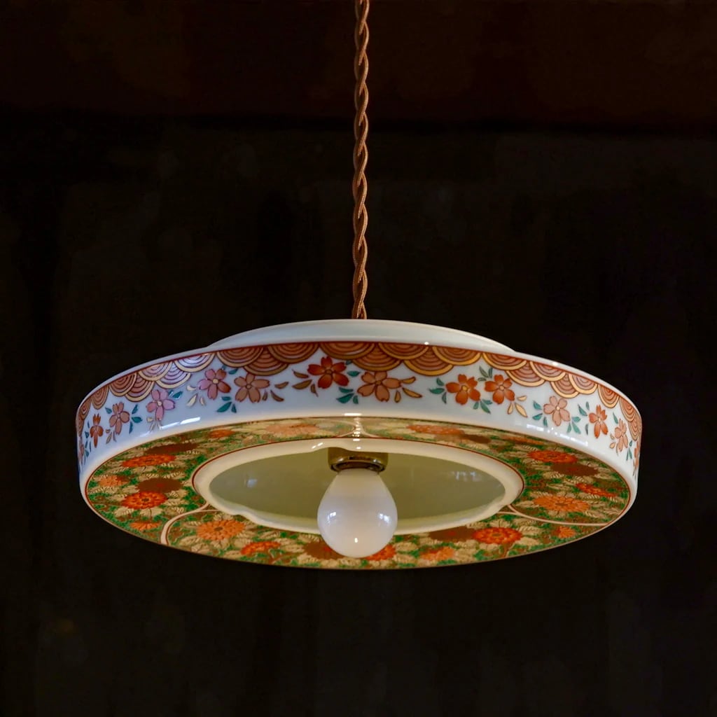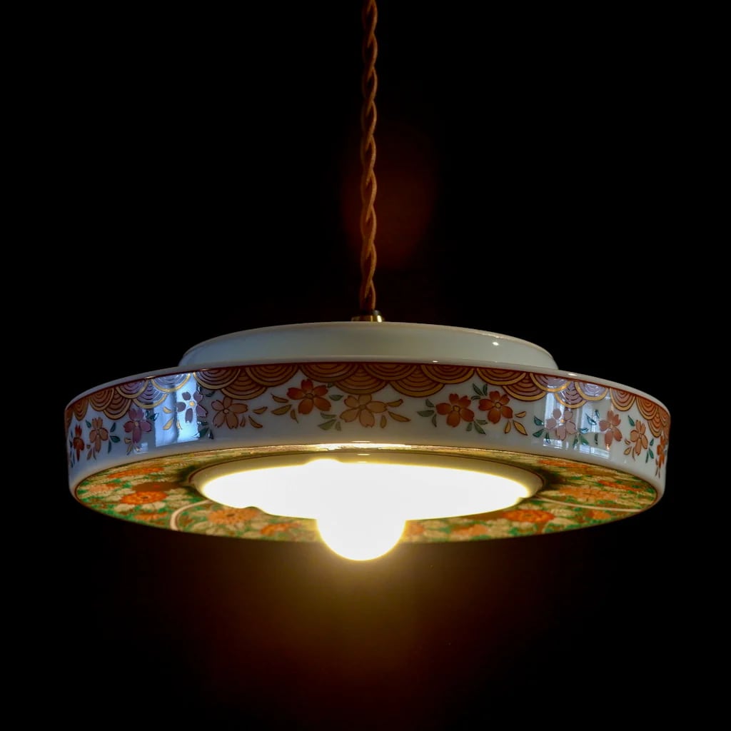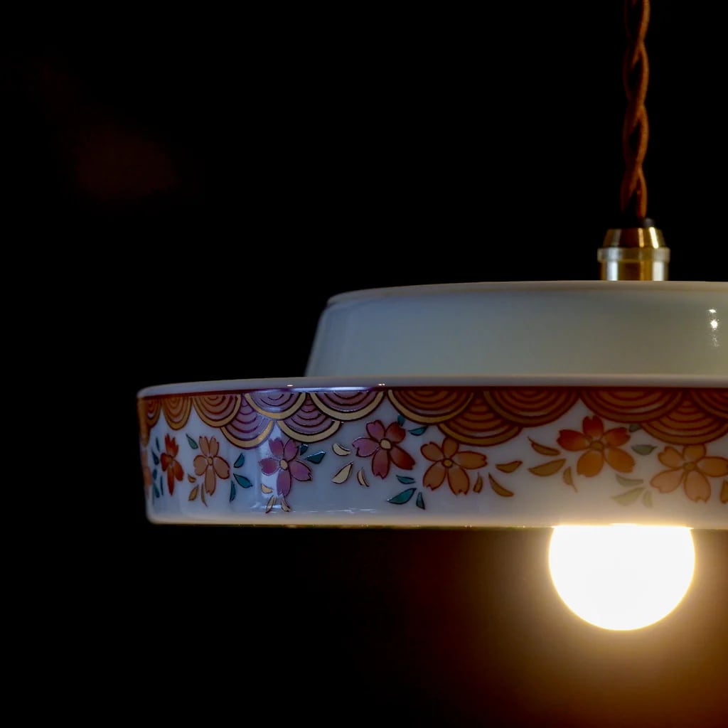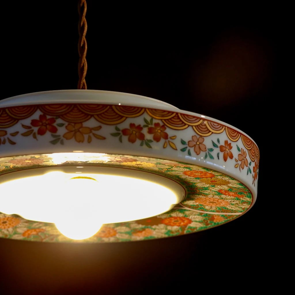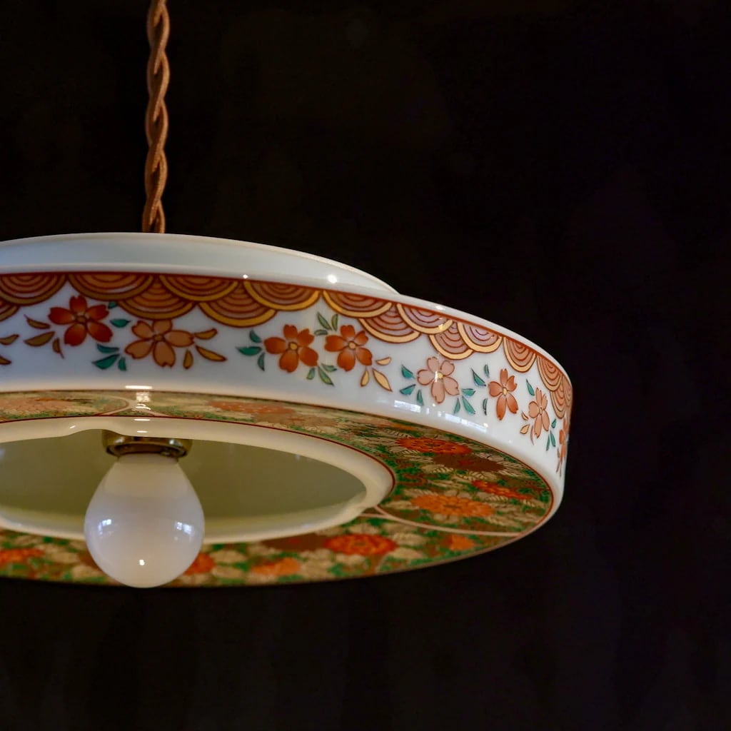 有田焼き・哲山の灰皿をペンダントライトにリメイクされた作品です。