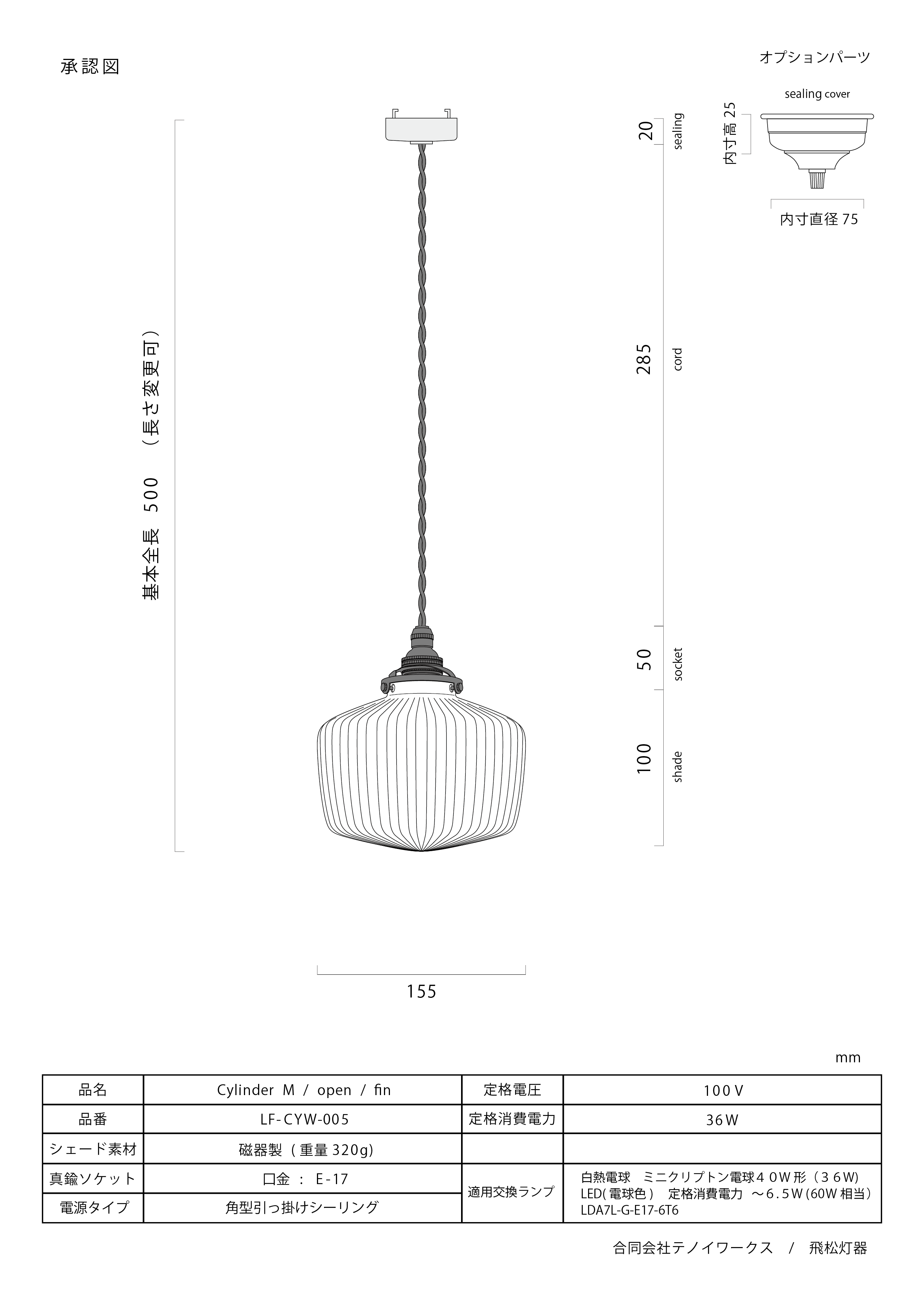 Cylinder M / 飛松灯器 ※受注生産品