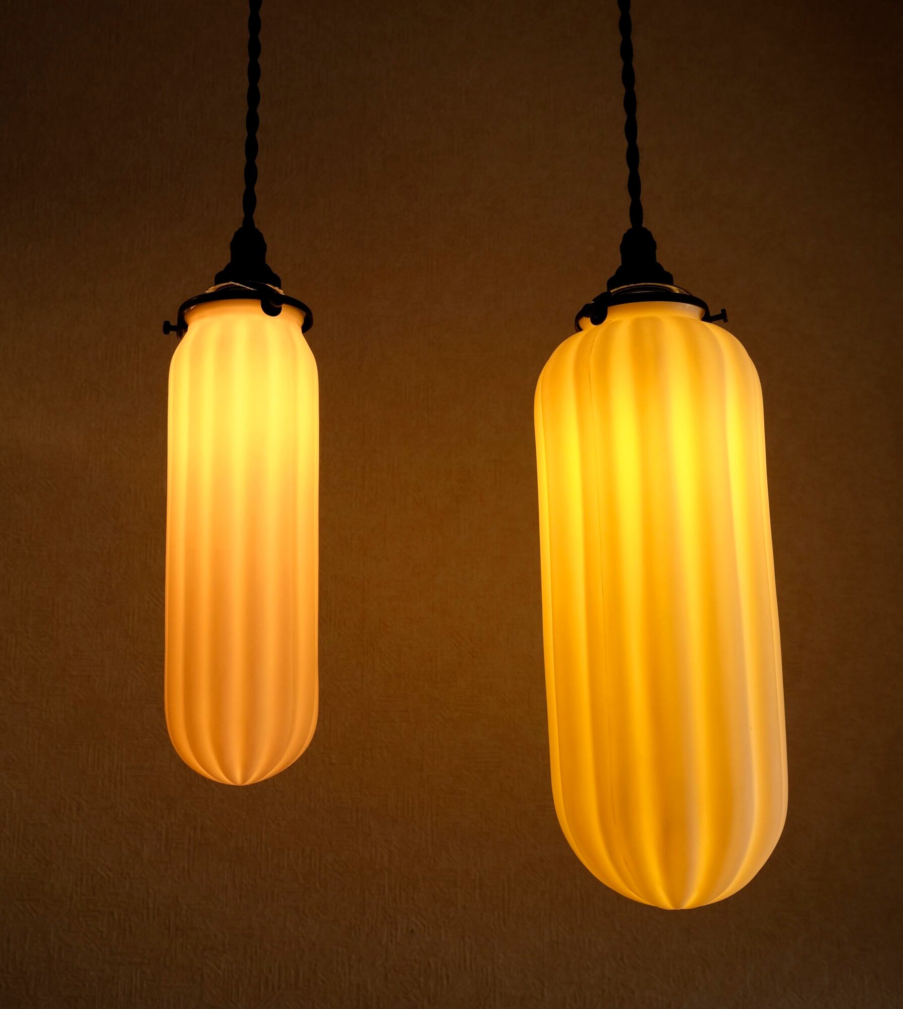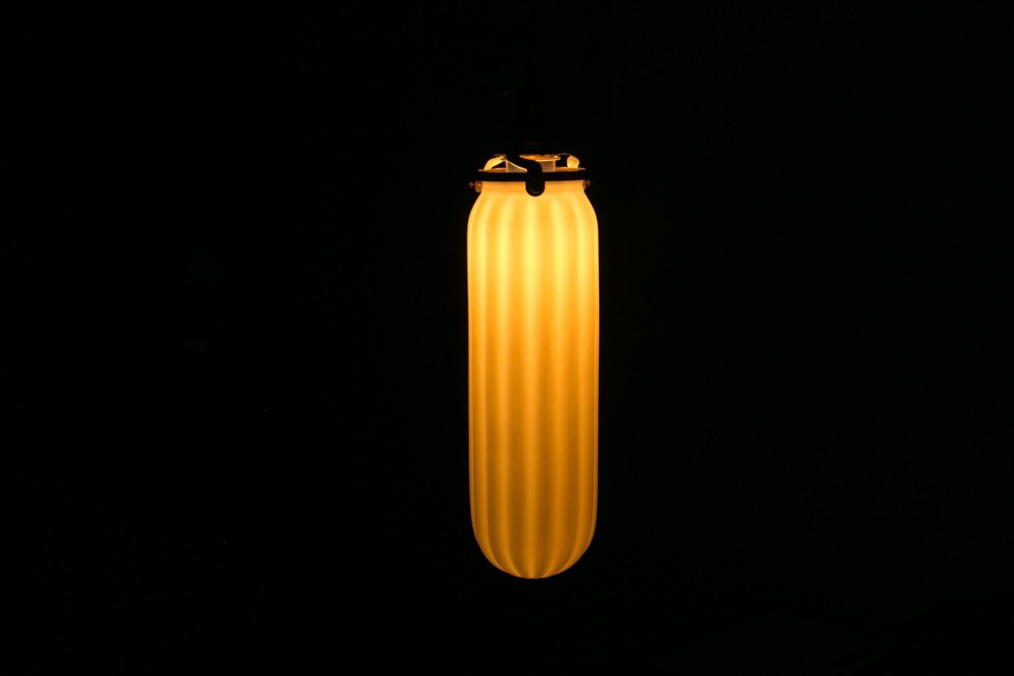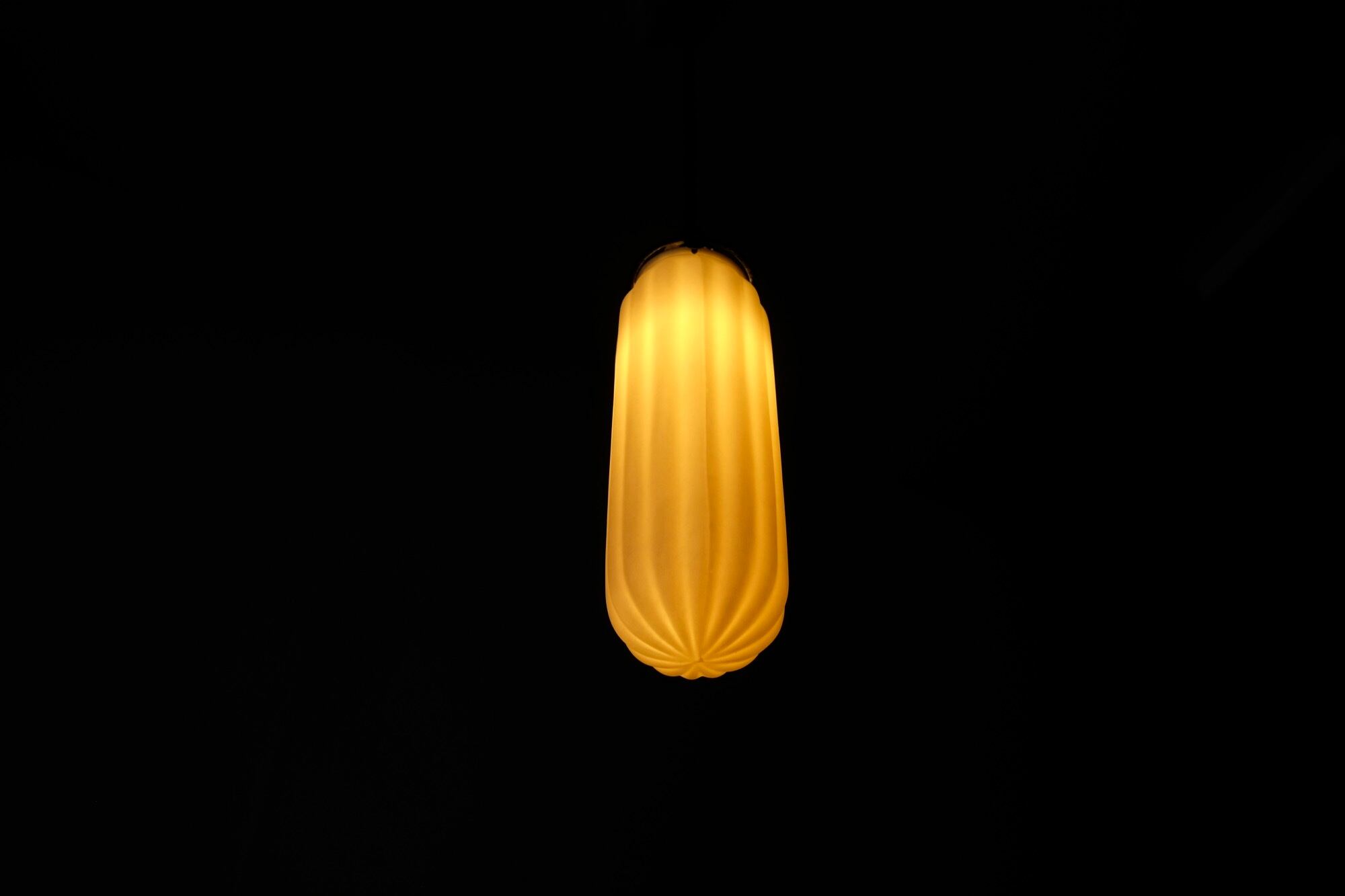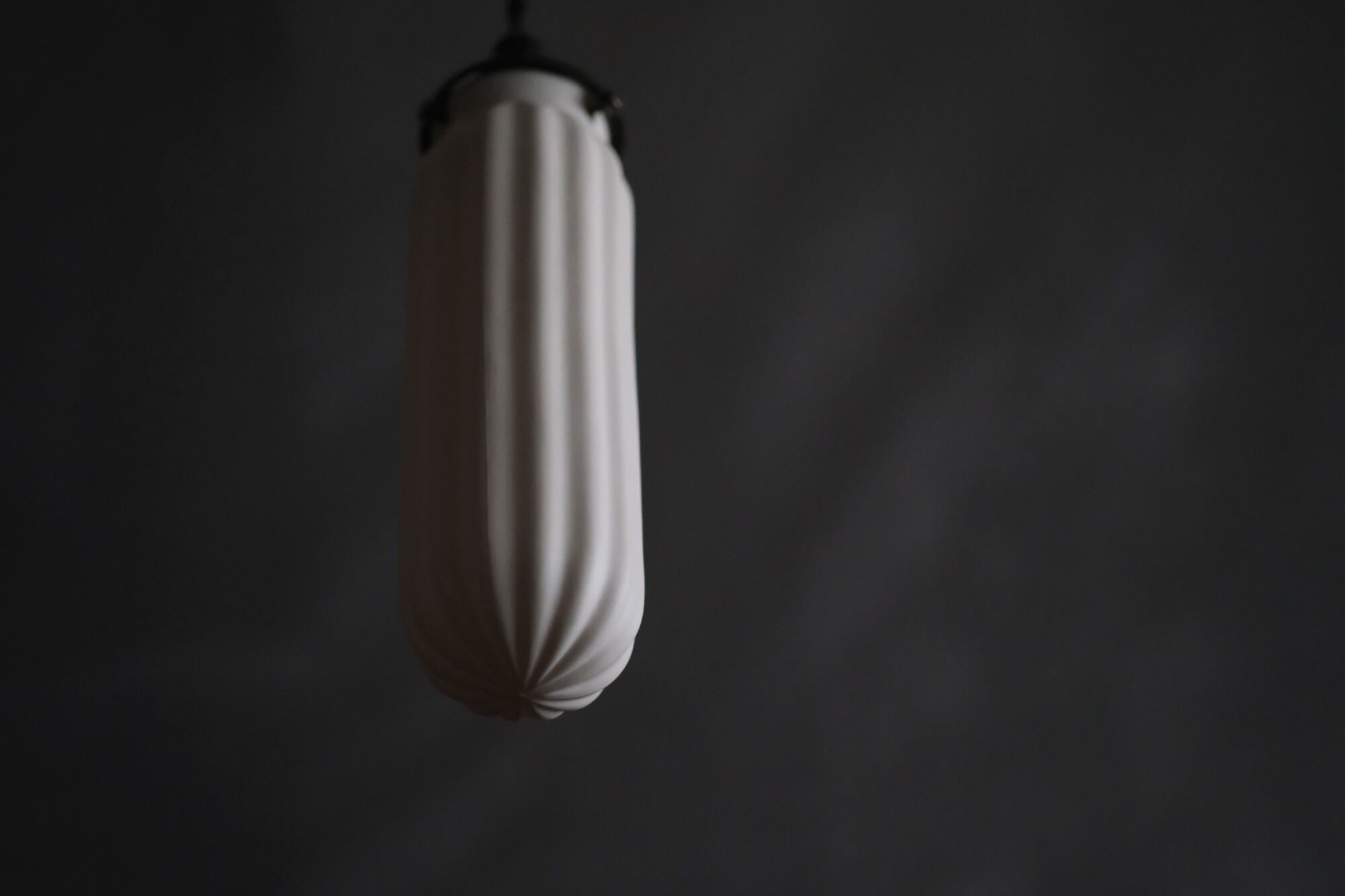 小さな器の中に灯る光が、縦に流れるドレープの溝に沿って、深みのある陰影を映し出します。空間全体を照らすのではなく、視線の先に温かな「光の溜まり」を作るような、情緒豊かな演出が得意なモデルです。