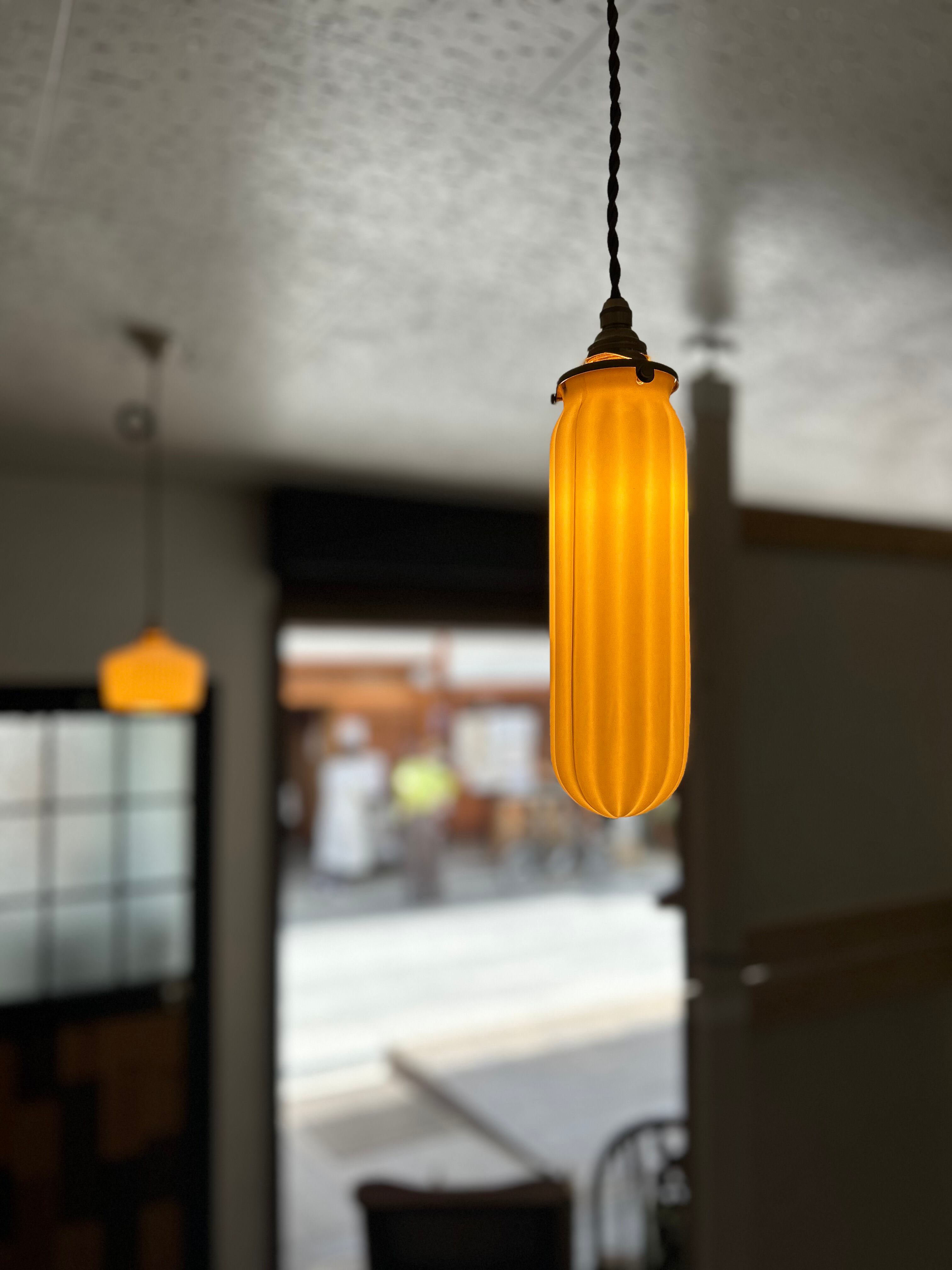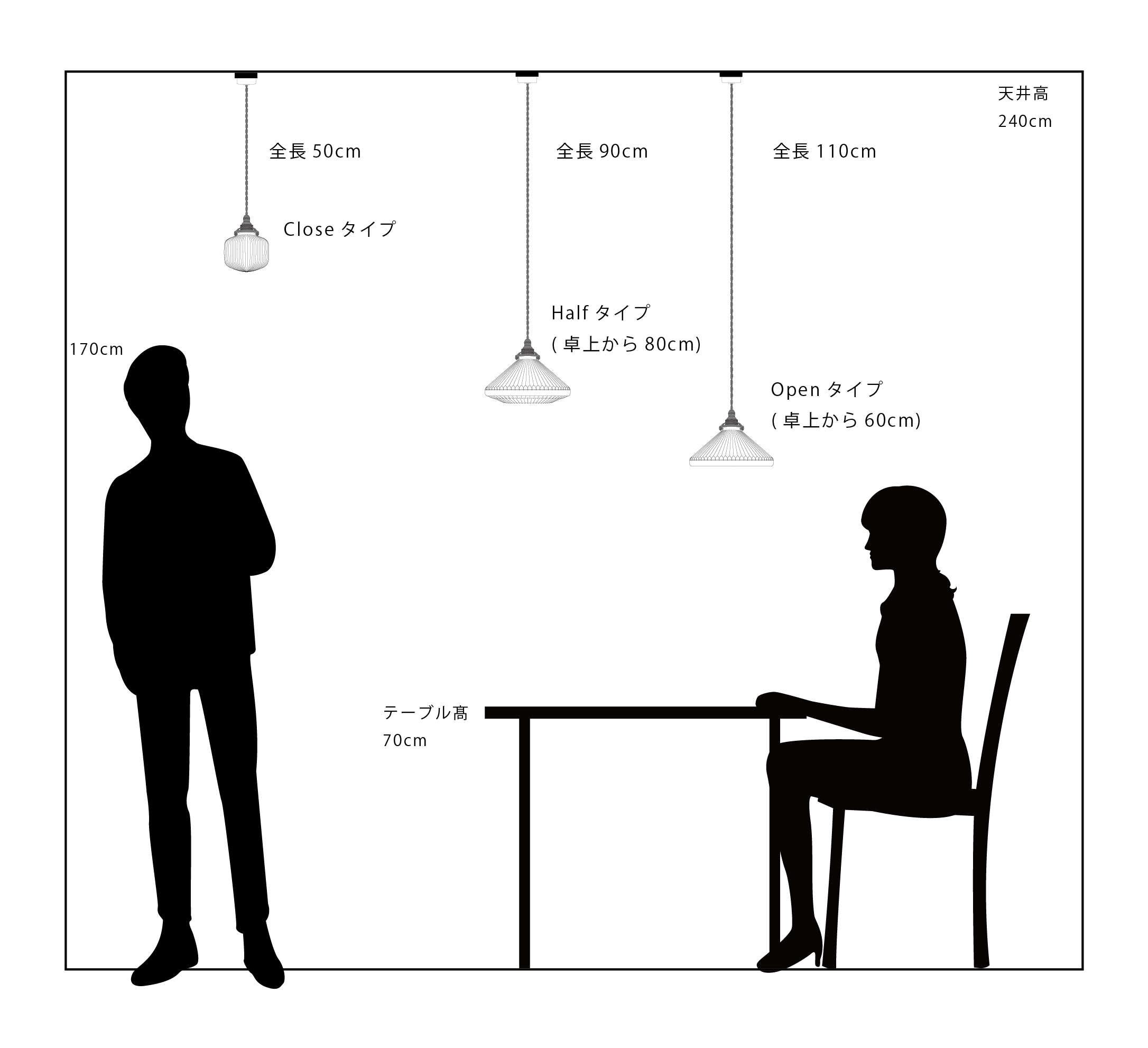 コンパクトな形状を活かし、複数を高低差をつけて吊るすことで、空間に心地よいリズムが生まれます。単体での「静」の美しさはもちろん、他のシェードとの組みあわあせた際にも、全体のバランスを崩さずドレープの個性が際立ちます。