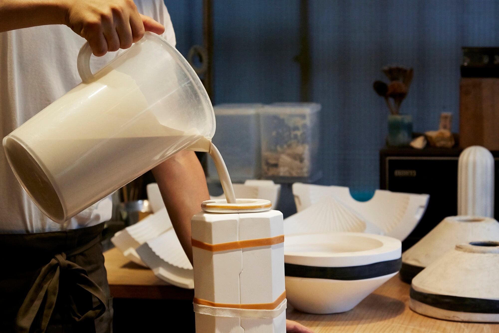 Slimシリーズの中で最も小ぶりなSサイズは、ドレープの曲線が凝縮されることで、まるで繊細なレースを纏ったような可憐な佇まいを見せます。小さなサイズ感ながら、磁器の質感が空間に上質なアクセントを添えてくれます。