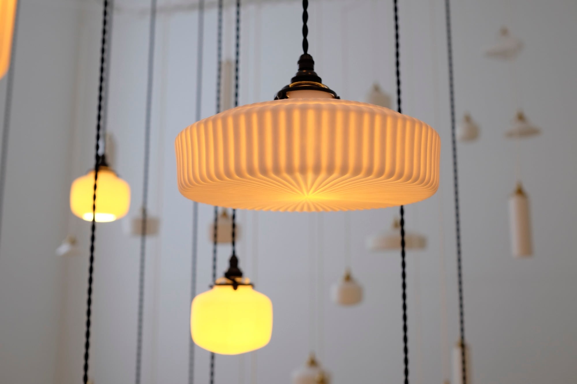 おおらかな造形から溢れる均一な透過光が、空間を静かに、そして豊かに満たしてくれる磁器の灯りです。